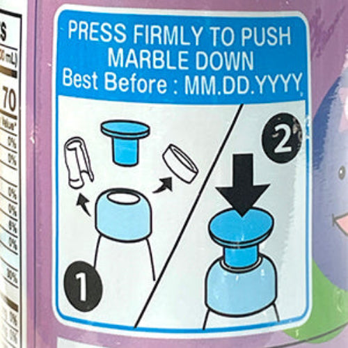 • The drink comes in a unique glass bottle with a marble stopper, which is pushed down into the bottle to open it.