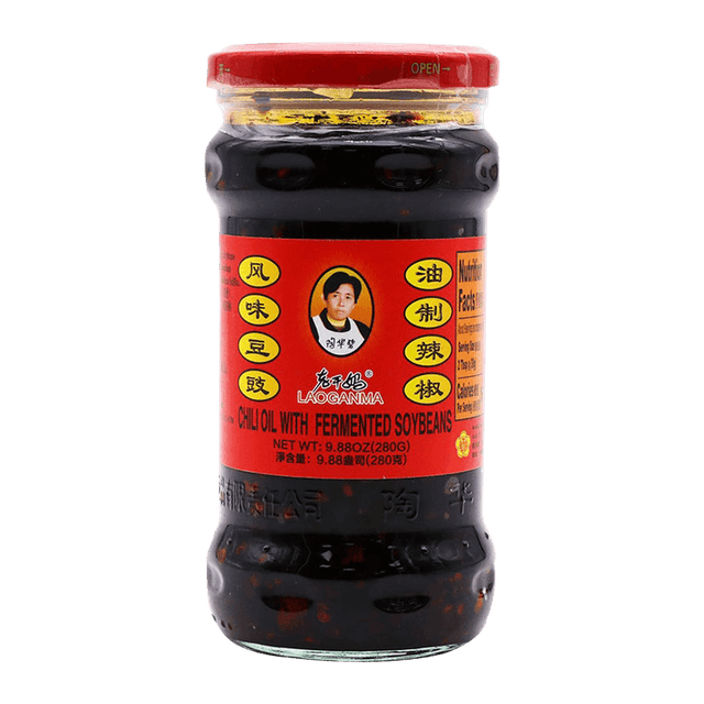 Is a popular Chinese condiment made with a savory and spicy blend of fermented black soybeans, chili peppers, and soybean oil.