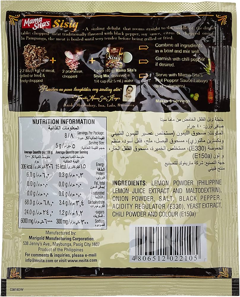 - Mama Sita's Sisig (Citrus Pepper Spice) Seasoning Mix is a versatile and healthy option for anyone looking to add a new and bold flavor to their cooking. So, whether you're cooking traditional Filipino dishes or experimenting with new recipes, Mama Sita's Sisig (Citrus Pepper Spice) Seasoning Mix is the perfect ingredient to elevate your dishes and add a unique and delicious flavor.